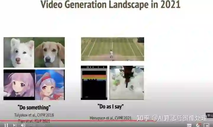 摘要:在本视频中,我们将讨论几种视频生成模型,如MoCoGAN和MoCoGAN HD,我们将了解这些方法背后的直觉,以及一些重要的实现细节。此外,我们将在视频生成领域引入一个新的领域,称为可播放视频生成,它允许对视频内容进行可控和交互式操作。