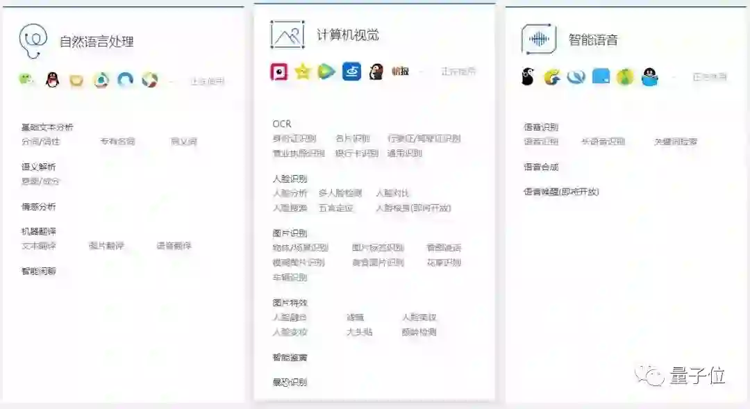 腾讯AI开放平台汇聚顶尖AI技术能力、专业人才和产业资源,依托腾讯AI Lab、优图实验室、WeChat AI等团队强大的技术能力,升级锻造创业项目。以腾讯AI加速器为桥梁,连接产业合作伙伴,推动AI技术在细分领域中的落地应用。基于三大技术引擎,平台全面开放超过60个API接口,提供自然语言处理、计算机视觉、语音识别能力支持。