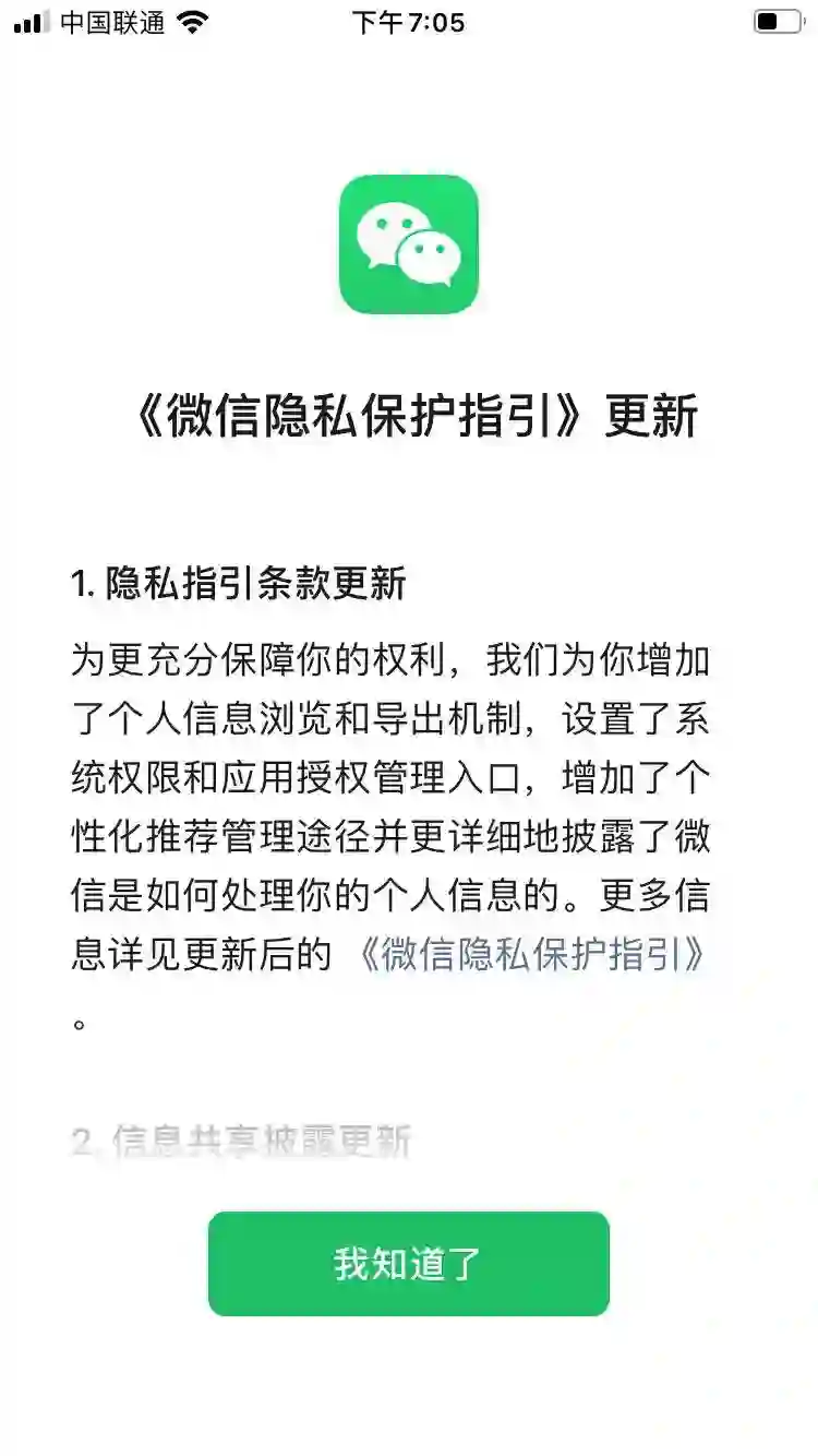 2021年10月29日,微信 8.0.16新版本发布,大范围更新了隐私政策、个人信息和权限等功能,也是为了满足《个人信息保护法》的基本要求。