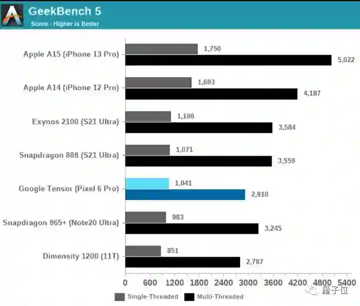 根据Anandtech的测试,从跑分上来看,初代Tensor性能接近骁龙888。