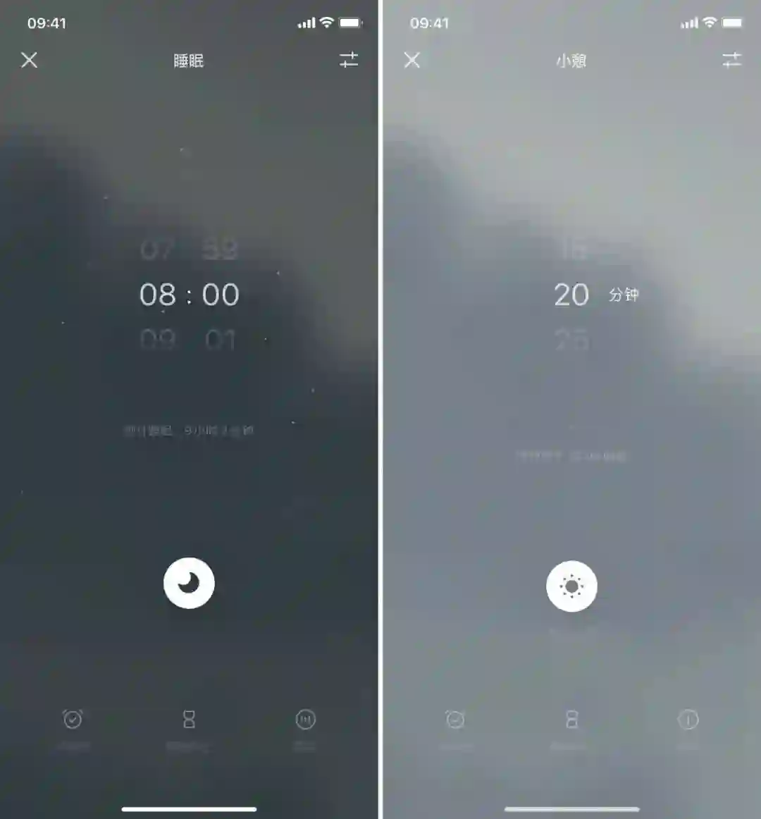 经过一上午的忙碌后,好好睡一个午觉能够让你快速恢复精神,应对下午的工作和学习。「小憩」的使用流程与「睡眠」大同小异,你可以设置自己想要休息的时间,应用会显示将于几点唤醒你。设定好时间、戴上耳机,在白噪音中开始午睡吧。