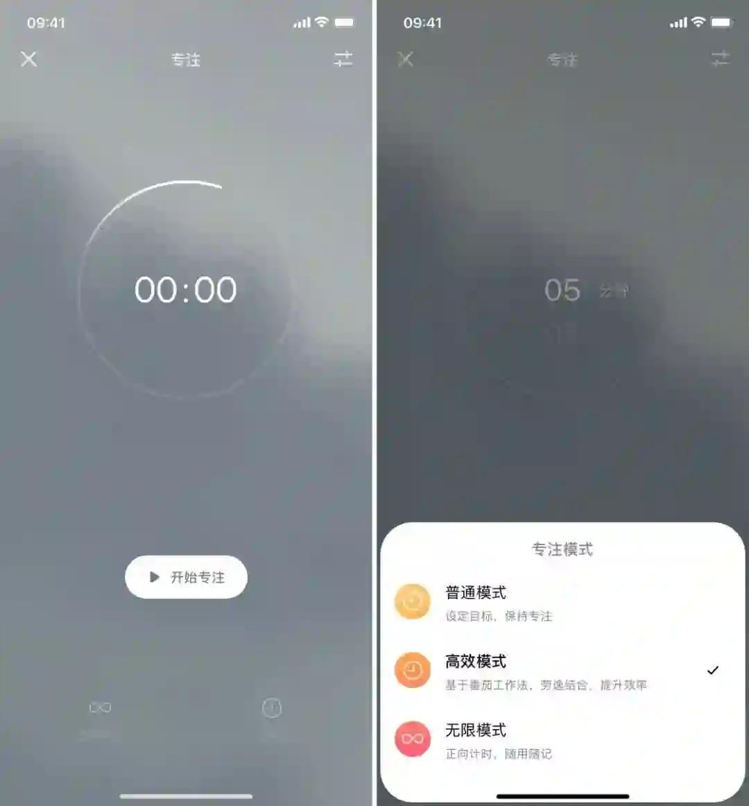 潮汐的「专注」功能是它从一开始就已经加入的功能,经过多年的迭代升级,潮汐如今在「专注」方面已经做得非常完善了。潮汐不但具有传统的番茄钟和普通倒计时,还支持无上限的正向计时。