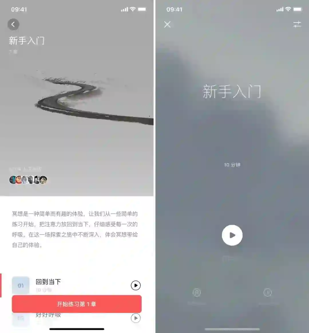 在完成了「新手入门」后,你还可以到「冥想 - 时刻」里寻找特定的主题进行练习。比如。在这些练习课程中,你可以跟着语音来调整自己的身体、思维,应用会通过语言引导,带你逐渐进入特定的状态。