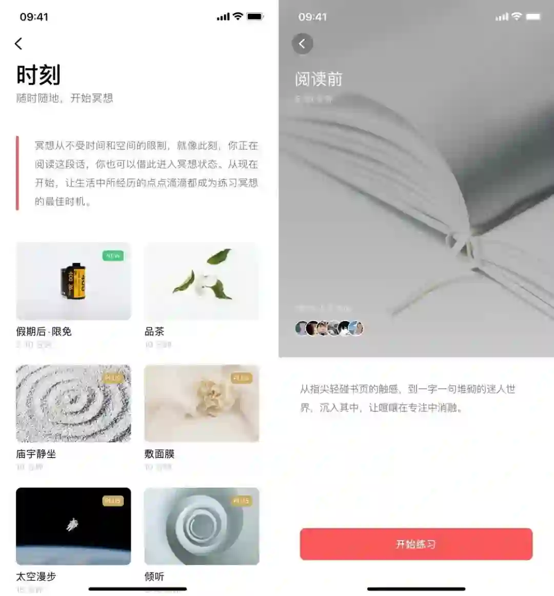 以我个人为例,我很喜欢在「无限模式」下听着白噪音来看书或写作。在专注前,我还会进行一次「阅读前」或「专注」的冥想练习,帮助我更快进入那个只有自己和文字的世界,提升阅读或写作的专注度。