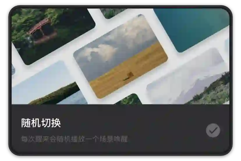 许多人曾这么调侃道,「毁掉一首歌的方法就是把它做成闹铃」,作为将你从睡梦中拉回现实的铃声,如果你每天起床听到的都是同一段音乐,自然容易对其感到厌恶。潮汐为了避免这种情况,还在闹铃中提供了「随机选择」的功能,让你在每天醒来时听到的声音都不一样。