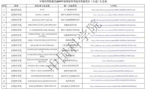根据国家科技奖励工作办公室《关于2019年度国家科学技术奖励提名工作的通知》(国科奖字〔2018〕41号)要求,现将中国科学院提名2019年度国家科技奖励的项目(人选)情况予以公示。
