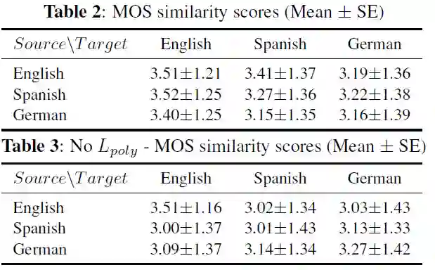 其中 ya 表示语言 a 的语音,用于提取说话人音色信息,sb 表示语言 b 的文本,LUT 为 look-up table,Na 表示语言 a 的 speaker encoder,G 表示 TTS 生成模型,