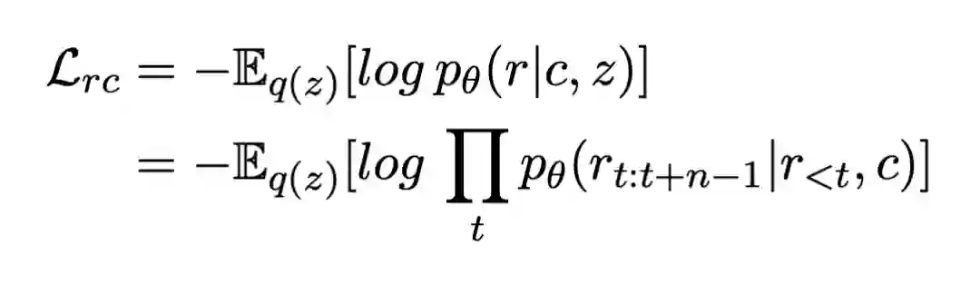 在 Bag-of-words Predicting 中,让隐变量以非自回归方式预测响应中的单词,即鼓励隐变量中可以尽可能包含回复的词汇信息。这个方法可以看做是增大了重建损失的权重,让模型更多去关注优化重建损失项。