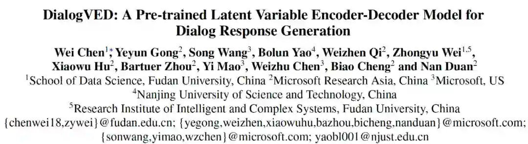 [1] DialogVED: A Pre-trained Latent Variable Encoder-Decoder Model for Dialog Response Generation