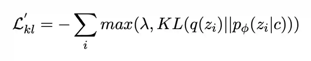 在 Free Bits 中,为了能让更多的信息被编码到隐变量里,让 KL 项的每一维都 “保留一点空间”。具体来说,如果这一维的 KL 值太小,就不去优化它,等到它增大超过一个阈值再优化。