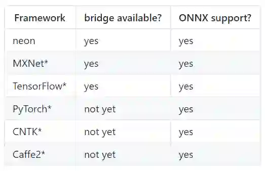 对于这个早期版本,官方提供了用于编译基于 MXNet 和 TensorFlow 的项目的框架集成指南。 如果你已经有了一个训练好的模型,官方已经为如何导入深度学习模型并使用 nGraph API 提供了入门指南。