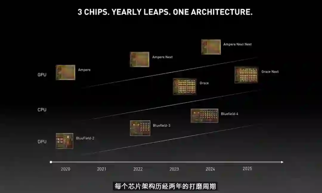 数据中心路线图包括CPU、GPU和DPU这三类芯片,Grace和BlueField是其中必不可少的关键组成部分。