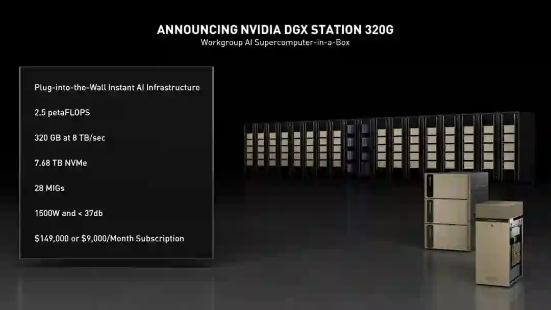 软硬件双管齐下,黄仁勋宣布升级NVIDIA专为工作组打造的「便携式AI数据中心」——NVIDIA DGX Station,以及NVIDIA专为密集型AI研发打造的AI数据中心产品——NVIDIA DGX SuperPod。