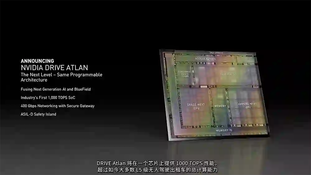 Atlan约是上一代Orin处理器的4倍,超过了绝大多数现有无人驾驶出租车的计算能力。