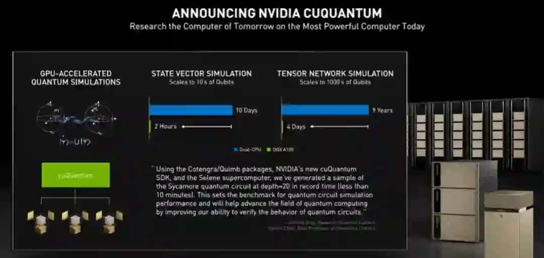 为加快有赖于量子比特的量子计算研究,黄仁勋发布了cuQuantum,其能够为量子电路模拟器提供加速,以助力研究人员设计出更完善的量子计算机。