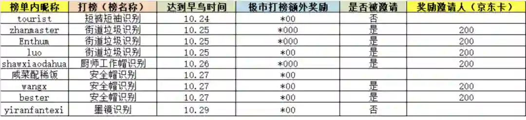 1024活动期间报名极市算法打榜(任意榜),达到早鸟分数最少可获得10倍京东卡奖励(常规额外奖励200元京东卡),最高可获得25倍京东卡奖励。