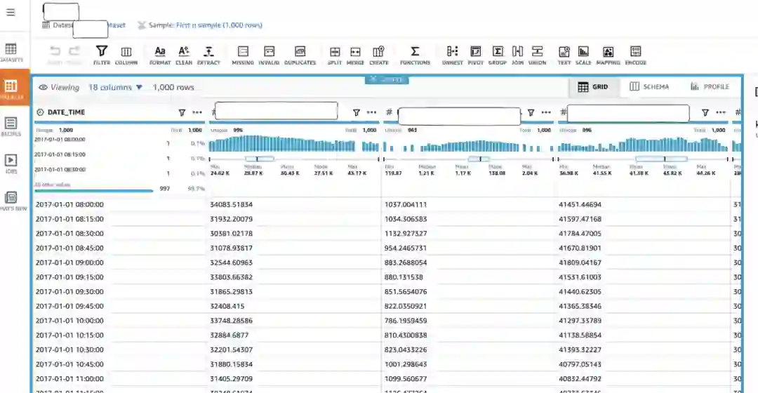 Data Brew 也是无代码数据准备工具。但这两种工具面向的是两类不同的受众。Data Wrangler 专门针对 ML,而 Data Brew 专注在通用探索性数据分析(EDA)上。另外,Data Brew 是一个以 UI 为中心的工具。