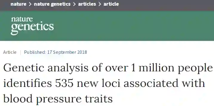 参考资料:1)Study of one million people leads to world's biggest advance in blood pressure genetics