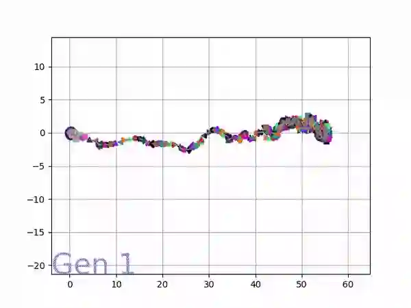 图 3 :可视化代际行为进化。每一代的颜色都会发生变化。在同一代中,每个伪子代的颜色强度基于该代适应度得分的百分位数 (聚合到五个仓中)。