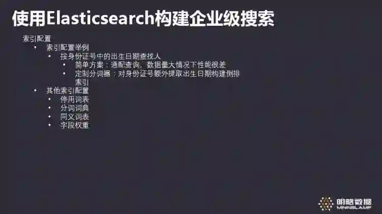 在给企业客户制定一套搜索方案时,需要先了解他们的数据种类和规模、以及业务模式等情况,从而可以设计好一个适当的索引分布方案。