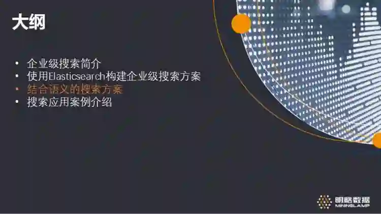 今天我想从以上四个方面内容展开介绍,首先对企业级搜索进行简单的介绍,然后重点讲一下我们的企业级搜索方案,最后会介绍一下语义分析在搜索方案中的运用和一些实际的案例。