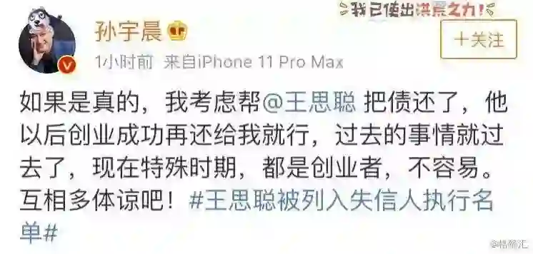 几分钟之后,孙宇晨在微博上表示要帮王思聪还债,结果被网友大骂“不要脸”。