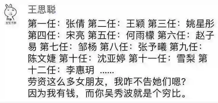 不过,虽然在投资上很成功,但王思聪身上的纨绔气息也很浓郁,这些年来他在微博上频频怼人,结下的梁子也不少。