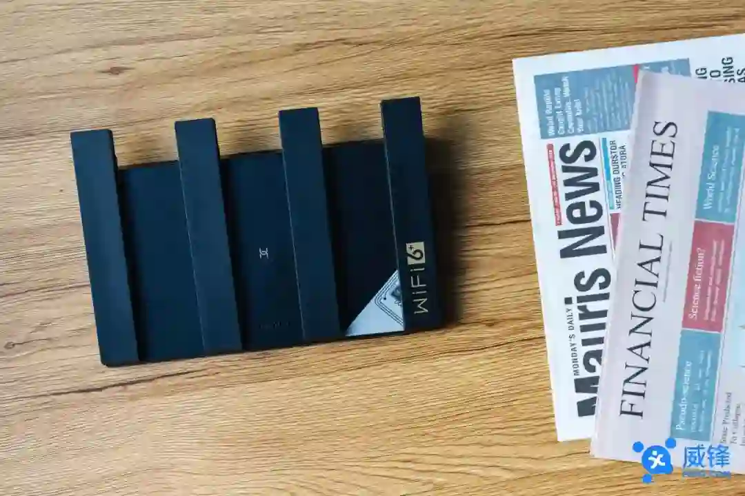 较为浮夸的天线设计其实对产品营销有很强的潜在推力,这一点在路由器方面体现得更为明显:一方面是因为在选购初期,消费者早已习惯于通过天线数量来判定一款路由器的优劣(虽然这是错误的方法),认为两根天线的路由器一定比四根天线的路由器慢,所以 AX3 Pro 的这种设计也无可厚非;另一方面,采用外置天线的设计能够在路由器信号条件被物体遮蔽时,通过手动调节天线角度来改善信号强度,这一点是其他采用内置天线的路由器所不能及的。AX3 Pro 外观设计上的另一个亮点是十分轻薄,讨巧地采用了由中间向四周收缩的倾斜式设计,营造出了机身十分轻薄的视觉效果,但这种设计导致了路由器内的元器件没有足够的散热空间,可能会对散热表现造成一定负担。