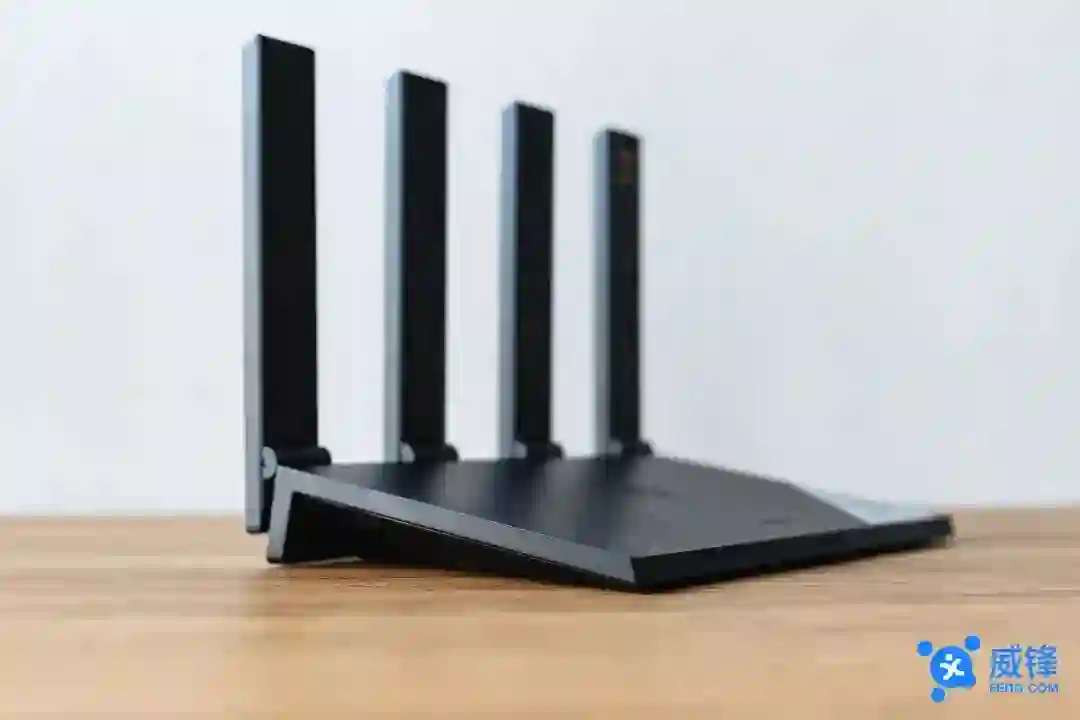 外观上,AX3 Pro 延续了此前其他华为路由器的设计,四根稍显硕大的天线搭配轻薄的机身组成了这台路由器外观上的基本亮点。