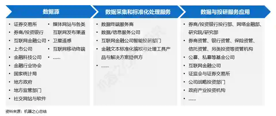 由于智能投研更侧重投资端,其服务B端客户积累得到的更规范的投资理念、更标准化的投资策略、更深度的智能算法技术运用经验等优势,也逐步为作为前端顾问的智能投顾提供后台支持。虽然二者应用的数据类型与技术类似,但服务内容与目标完全不同,在中国同属于投资咨询业务。
