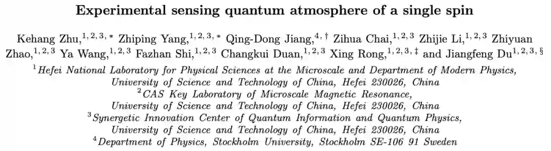 在校期间,朱科航发表了题为「Experimental sensing quantum atmosphere of a single spin」的论文。