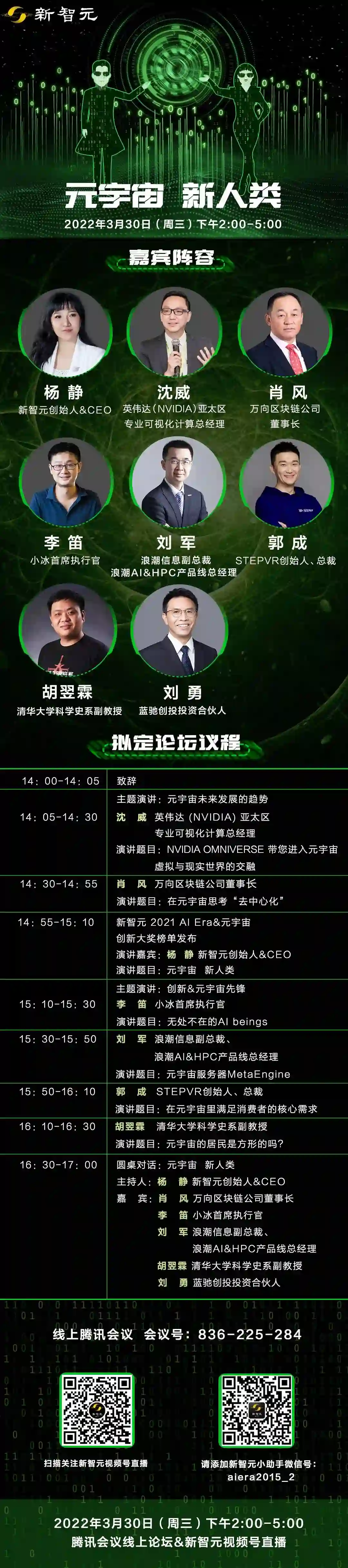 【新智元导读】3月30日(周三)下午,新智元首期元宇宙论坛「元宇宙 新人类」即将上线!详情请看今日3条~