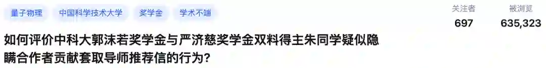 2020年10月,知乎上出现了一个指控朱科航涉嫌在奖学金评选上获得优势,「隐瞒合作者贡献、套取导师推荐信」的行为的匿名提问。