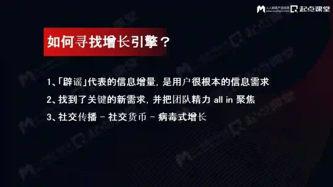 当我们发现某类需求或内容,它具备更强的被分享能力和传播能力,应该让全团队都去找这类特征,把其它相对常规的内容都停下来,去寻找它能做到什么程度。