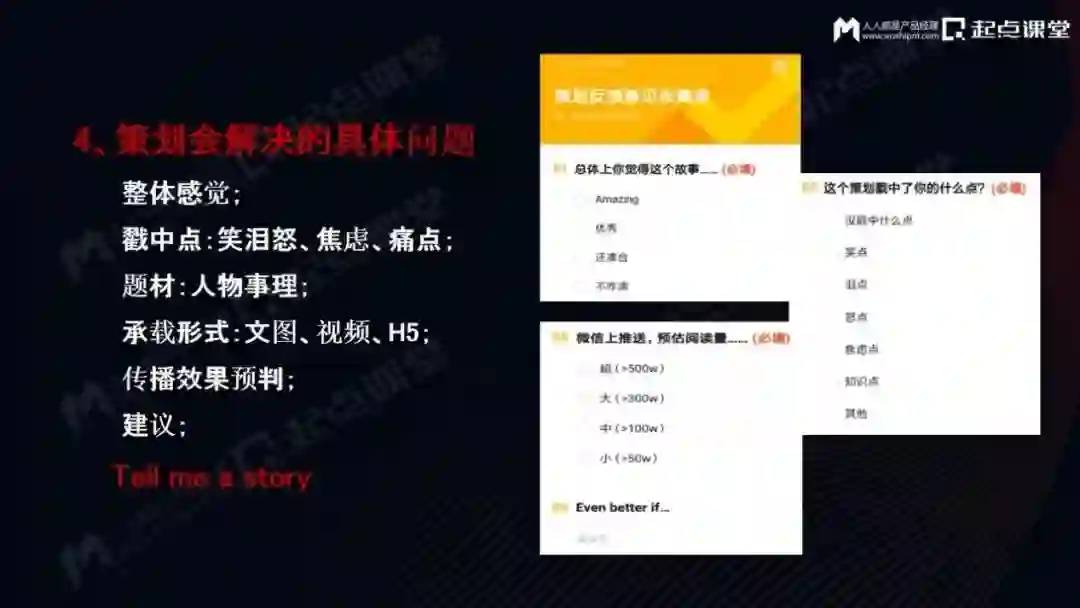 下面重点分享策划会的内容。策划会就是反复的去校准我们所感知和观察到的用户需求,并以相对一致的标准把它明确和讨论出来。