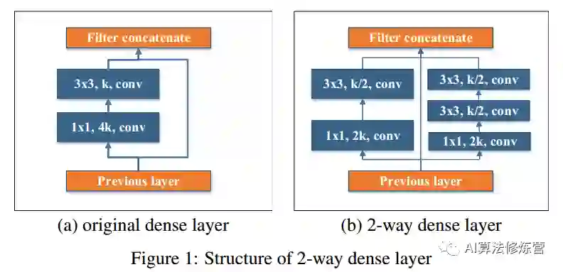 为了提高速度,采用了conv+bn+relu的组合(而不是DenseNet中的预激活组合(conv+relu+bn)),post-activation中,在推断阶段所有的BN层可以和卷积层合并,可以促进模型推理加速。为了弥补这个改变给准确度带来的负面影响,使用更浅更宽的网络结构,在最后一个dense block后添加一个1x1的卷积层来获得更强的特征表达能力。
