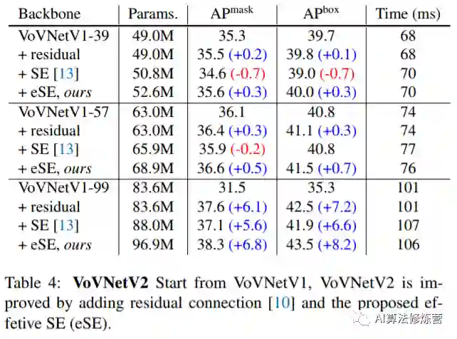 VoVNet V2来自论文:《CenterMask: Real-Time Anchor-Free Instance Segmentation》。在实例分割任务中用作backbone。