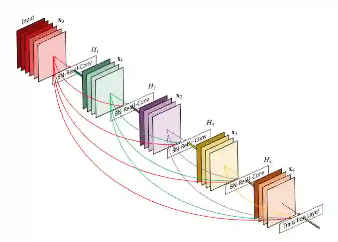 DenseNet提出了一种很简单的方法,DenseNet直接通过将前面所有层与后面的层建立密集连接来对特征进行重用来解决这个问题,连接方式可以看下面这张图:引用于文章《深入解析DenseNet》