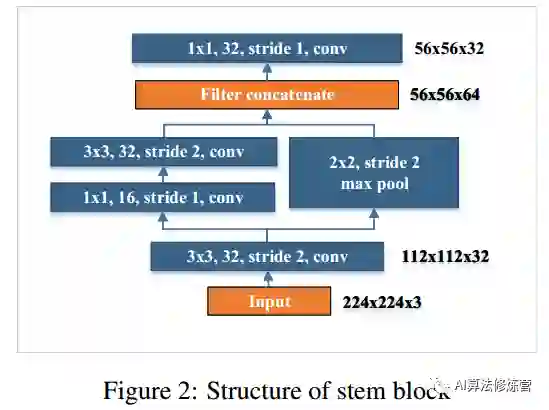 这一部分和组合池化非常相似,stem block使用了strided 3x3卷积和最大值池化两种的优势引申而来的池化策略(组合池化使用的是最大值池化和均值池化),可以丰富特征层。