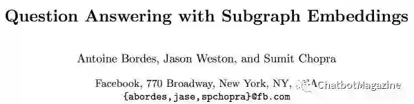 本期我们将介绍KB-QA传统方法之一的向量建模(Vector Modeling),我们以一个该方法的经典代表作为例,为大家进一步揭开知识库问答的面纱。该方法来自Facebook公司Bordes A, Chopra S, Weston J的论文 Question answering with subgraph embeddings(文章发表于2014年的EMNLP会议)。