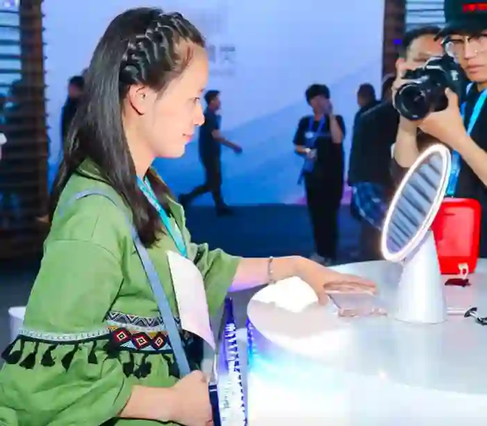 雷锋网向现场讲解人员了解到,这一产品有别于现在很火的玄关镜,并没有在镜面设置相关信息显示功能,而主要通过植入针对化妆这一定制场景的智能语音系统,通过智能语音功能改善化妆体验。