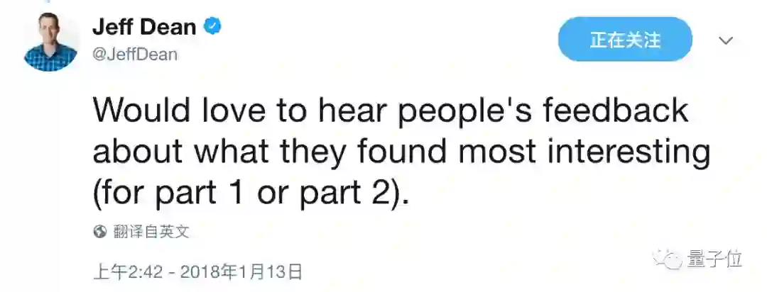 Jeff Dean还在Twitter上等待大家的反馈呢~