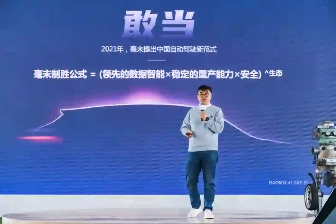 「2021 年,毫末智行提出中国自动驾驶的新范式,也就是毫末智行的致胜公式:以领先的数据智能体系,乘以稳定的量产能力乘以安全,之后再乘上生态的 N 次方。毫末智行的致胜公式源于毫末对自动驾驶行业的深刻理解,是毫末智行自动驾驶技术产业化落地的重要举措,」毫末智行董事长张凯在活动中说道。