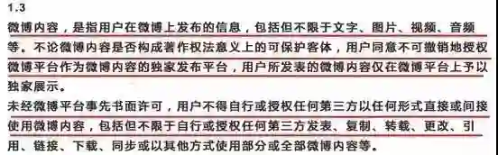 这些协议内容,被舆论理解为,虽然新浪微博不给用户钱,但你在我新浪微博上发的每一个文字以及其收益,都归新浪微博所有。这些条款,遭到诸多非议。