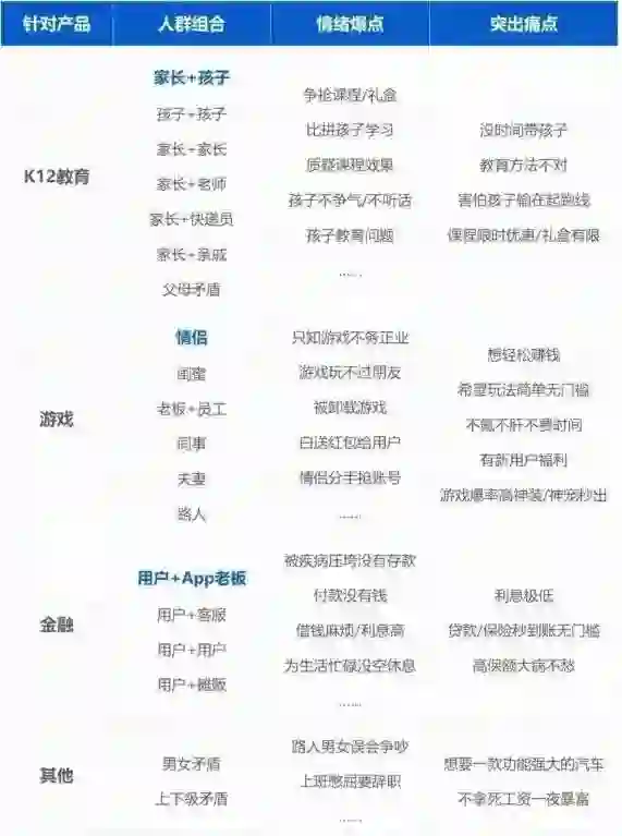 下面这张图是APP Growing总结的不同行业信息流广告用户群的关注点,可谓是刀刀见血,在用户的痛点上疯狂蹦迪。
