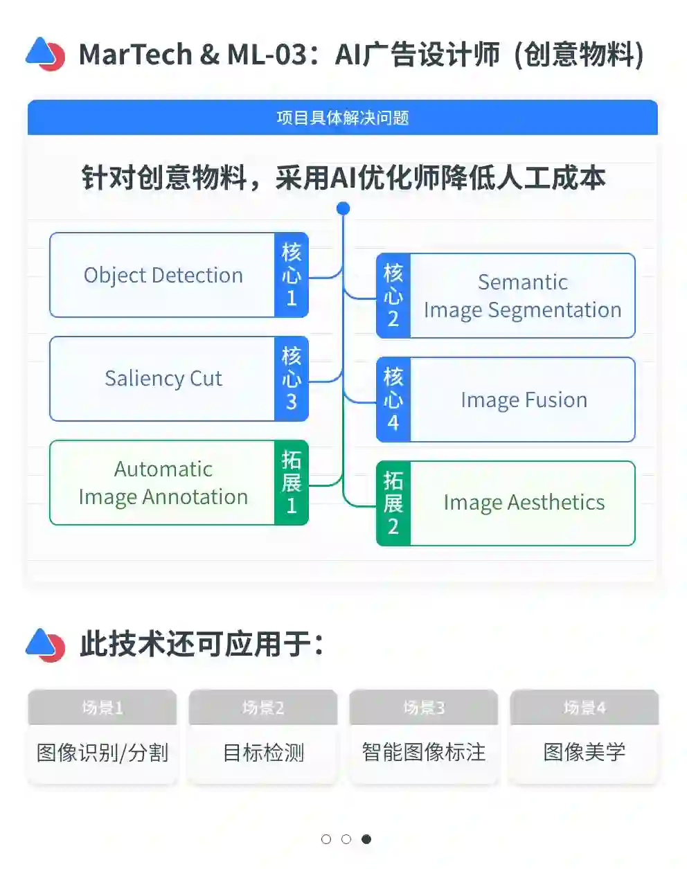 百度飞桨与后厂理工学院精选NLP/CV/计算广告与机器学习3大方向9大AI前沿工程项目,并提供脱敏数据集供学员实战使用,旨在培养具有核心竞争力的AI工程师。