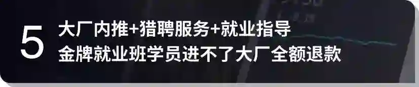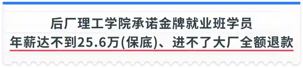 所以后厂理工学院愿意直接承诺,金牌就业班学员进不了大厂全额退款。
