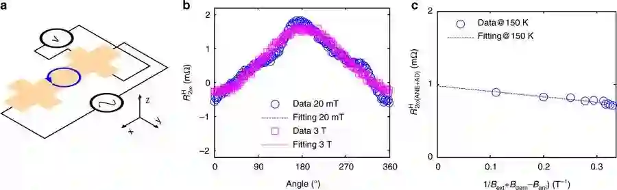 下图展示了霍尔电阻的测量装置以及霍尔电阻在不同条件下的变化。