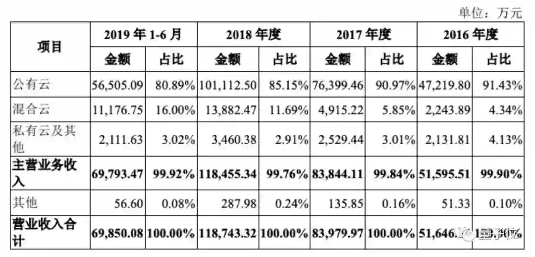 主要来自于公有云业务,收入5.65亿元,占比80.89%,与往年相比有所下降。其次是混合云业务,收入1.12亿元,占比提高到16%。