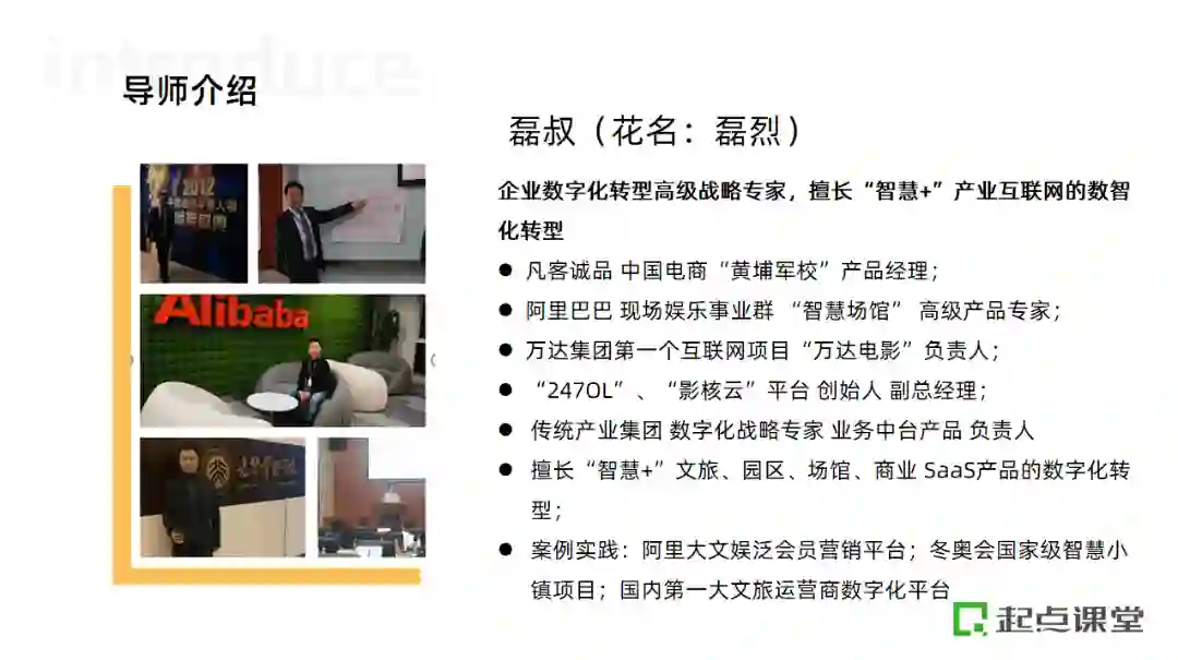 这是由起点课堂出品的B端产品公开课,专为正在做B端产品同学,或者对B端产品感兴趣想要了解相关工作内容的同学打造,课程将由企业数字化转型高级战略专家@磊叔直播授课。